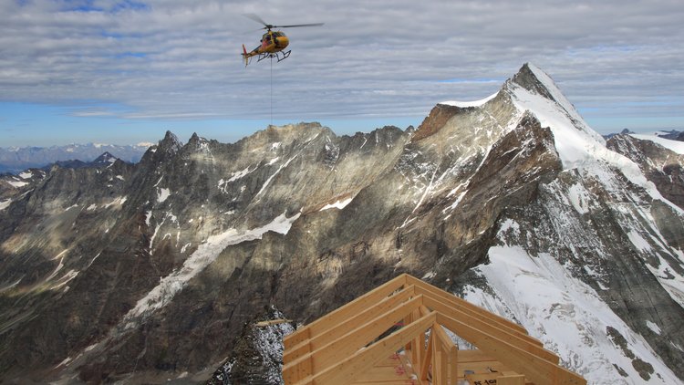 Durch die Höhenlage von ca. 3.830 m und Windgeschwindigkeiten von bis zu 200 km/h herrschten beim Bau ganz besondere Herausforderungen. So waren die Montagefenster für den Aufbau sehr kurz und sämtliche Materialien mussten per Helikopter zur Baustelle transportiert werden. Bei den Arbeiten am steilen Fels in hochalpiner Umgebung entscheidet jedes Detail über Dauerhaftigkeit und Sicherheit.
