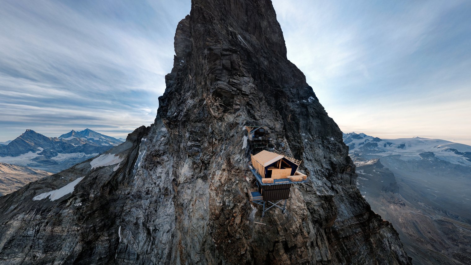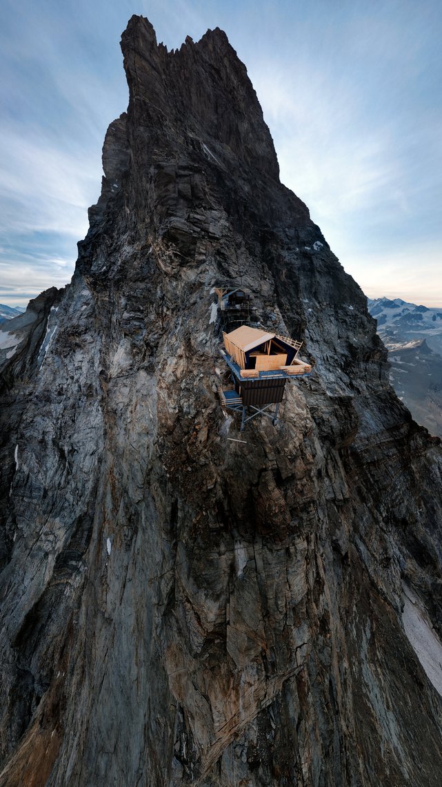 Was für ein atemberaubender Blick vom Capanna Carrel, einem hochalpinen Biwak für Alpinisten mit ca. 25 Schlafplätzen. Bei diesem Projekt handelt es sich um eine Schutzhütte für Bergsteiger am Normalweg über den italienischen Grat, nicht zu verwechseln mit einer klassisch bewirtschafteten Berghütte. Unabdingbar war eine dauerhafte, robuste und technisch präzise ausgeführte Struktur, die extremen klimatischen Bedingungen standhält und dabei gleichzeitig funktional auf das Wesentliche reduziert bleibt.
