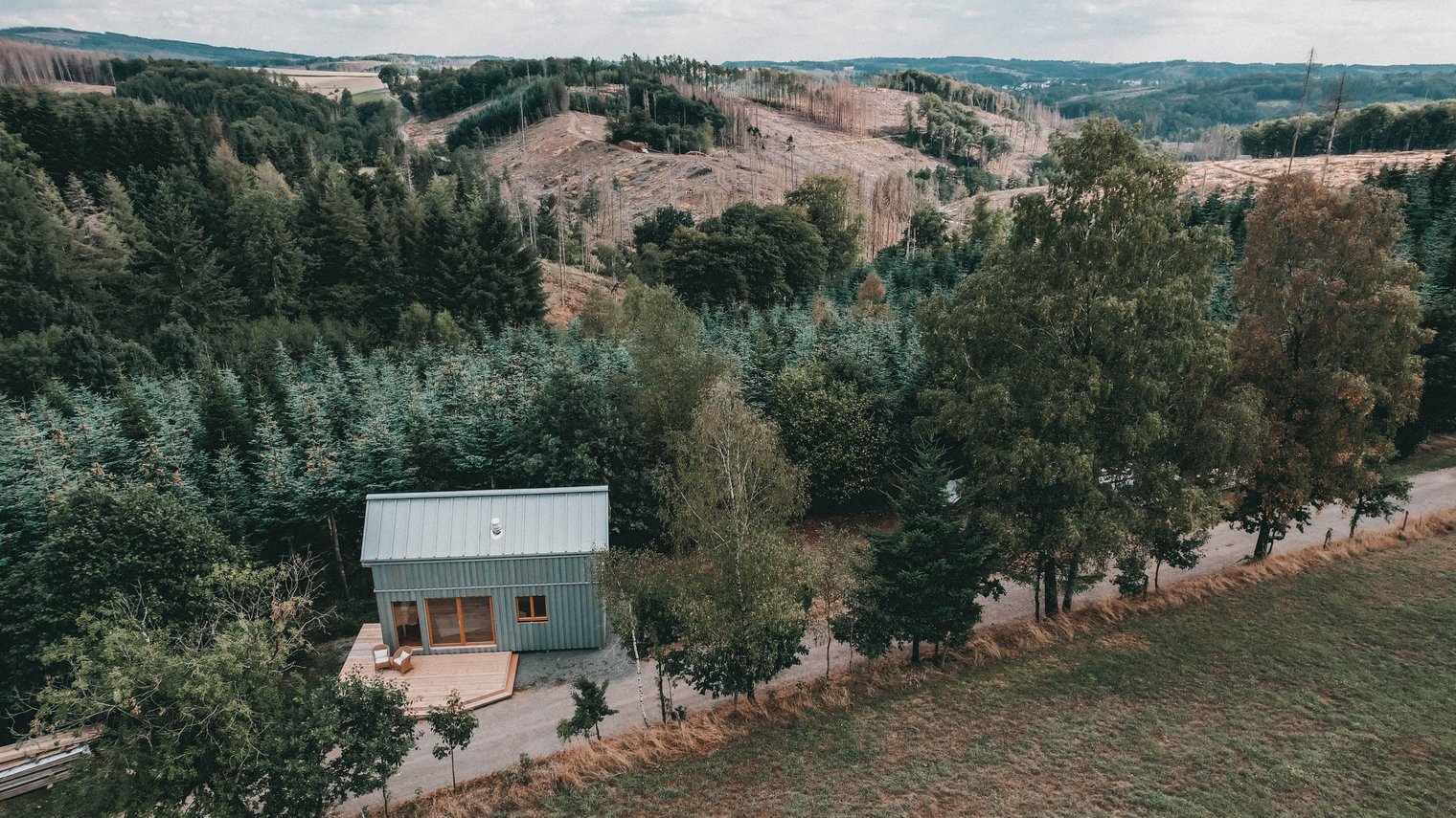 Vom Borkenkäfer zum nachhaltigen Bauen inspiriert - die Idee hinter den Organic Tiny Houses (OTH) im Gelzhäuser Forst entstand aus einer Herausforderung, die zur Chance wurde: eine sinnvolle Nutzung der stark steigenden Mengen an Holz, das infolge des Schädlings-Befalls gefällt werden musste. Die Käfer fressen ihre Gänge knapp unter der Baumrinde, was den Wasser- und Nährstoffstrom des Baumes zerstört. Die Bäume sterben ab, doch das Nutzholz bleibt unberührt und ist weiterhin qualitativ hochwertig - so schenkt das Projekt neues Leben und schafft nachhaltigen Wohnraum im kleinen Massstab.