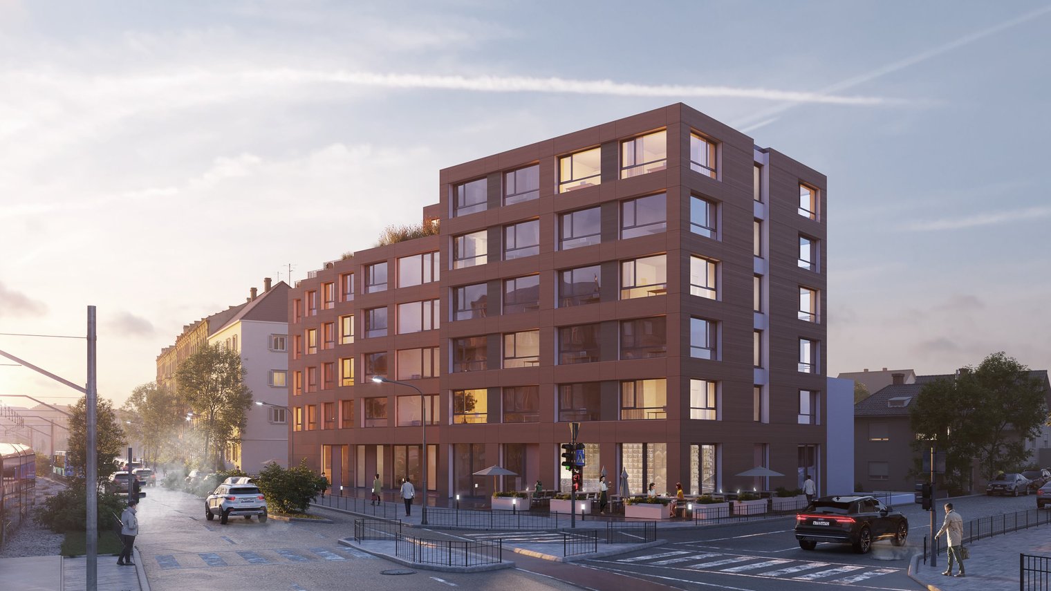 Die Obergeschosse werden in der Massivholzbauweise realisiert, der weitere Grossteil des Gebäudes besteht ebenfalls aus Holz. Die vorgefertigten Bauelemente und die Standardisierung der Apartments tragen dazu bei, den Aufwand vor Ort klein zu halten und den steigenden Materialkosten entgegenzuwirken.